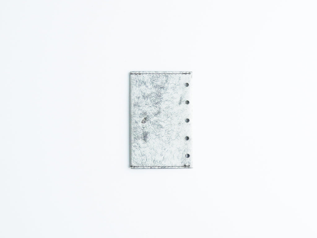 ワックスを乗せてからスクラッチ加工を施すことでよりムラ感が際立ち、ユニークでインパクトのある仕上がりとなっています。植物タンニン鞣しで染料仕上げ、オイルがしっかり入った革で、表面のホワイトワックスが使い込むほどに革の内部に浸透していき、ワックス革特有のツヤを帯び、味わい深い色に変化していく、そんな経年変化(エイジング)を愉しんでいただける革です。