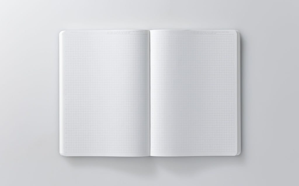 時刻を表す数字、日付と曜日、そしてグリッドという最低限の要素だけを載せたシンプルなノートなので、日記帳にもスケジュール帳やクロッキー帳にもなり、使う人の多彩な365日を受けとめます。